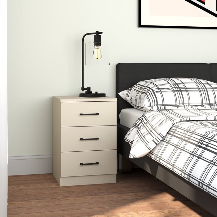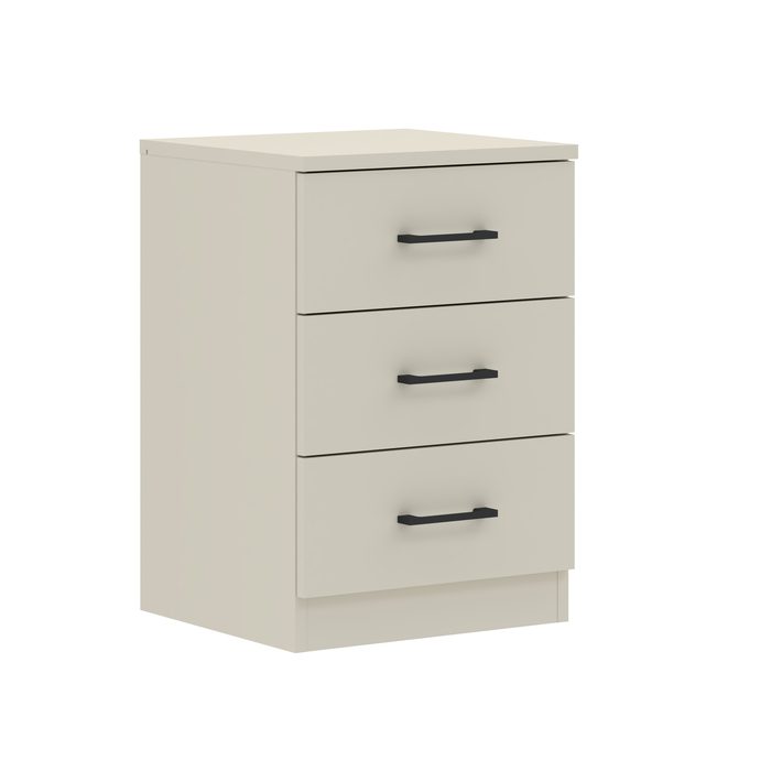 The Sorrento 3 Drawer Bedside Table is a stylish and practical addition to any bedroom, offering a clean, contemporary design that pairs effortlessly with a wide range of bedroom furniture. Its sleek profile and neat bar handles give it a modern, uncluttered look that feels both fresh and timeless.