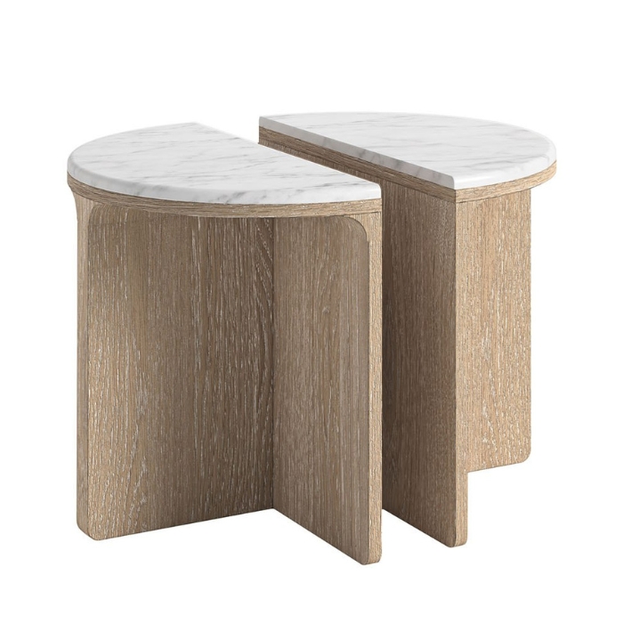 Pompeii Oak Half Moon Nest of Tables with Travertine Top