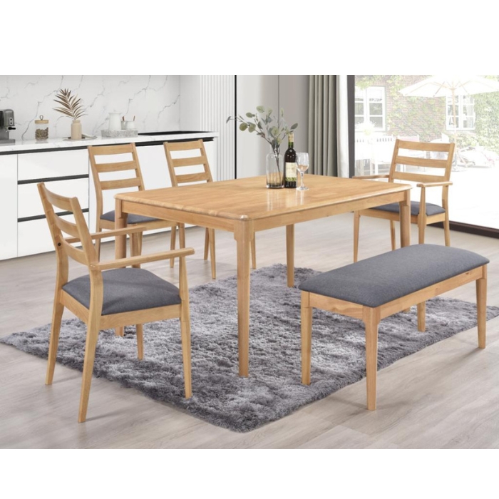 The Oklahoma Oak Table + 2 Chairs + 2 Carver Chairs + Dining Bench brings natural warmth and contemporary style to your dining space. This oak finish showcases a beautiful, timeless wood grain that instantly elevates the room, while the coordinating bench offers a relaxed and sociable seating option for everyday dining.