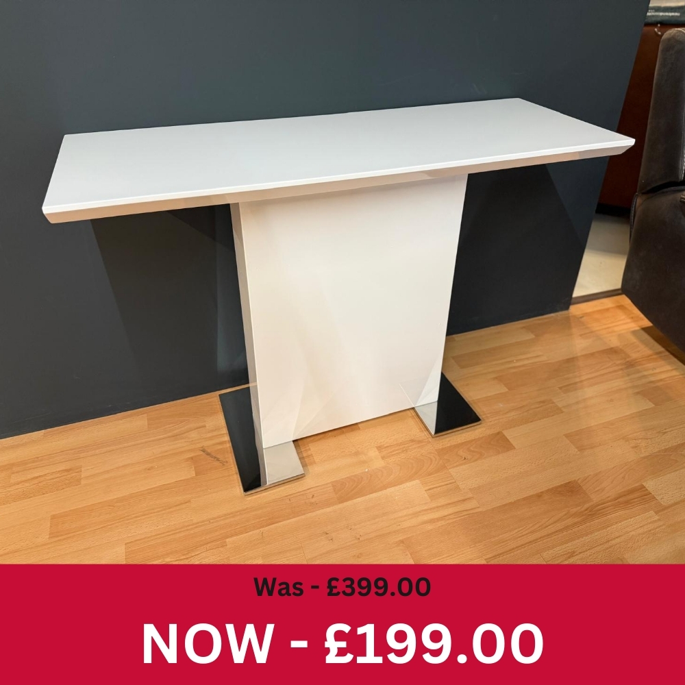 Fly Console Table. Sleek, elegant & minimalist styling with chrome base.
