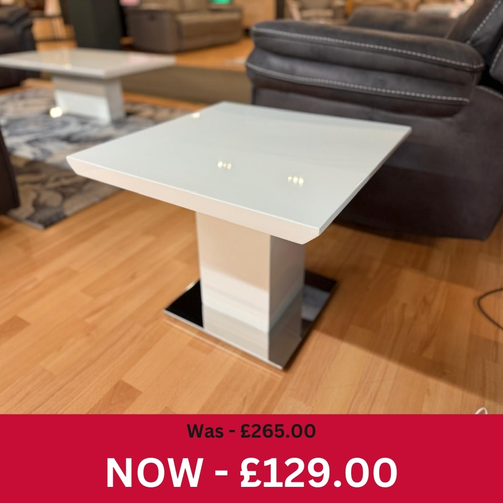 Fly End Table. Sleek, elegant & minimalist styling with chrome base.