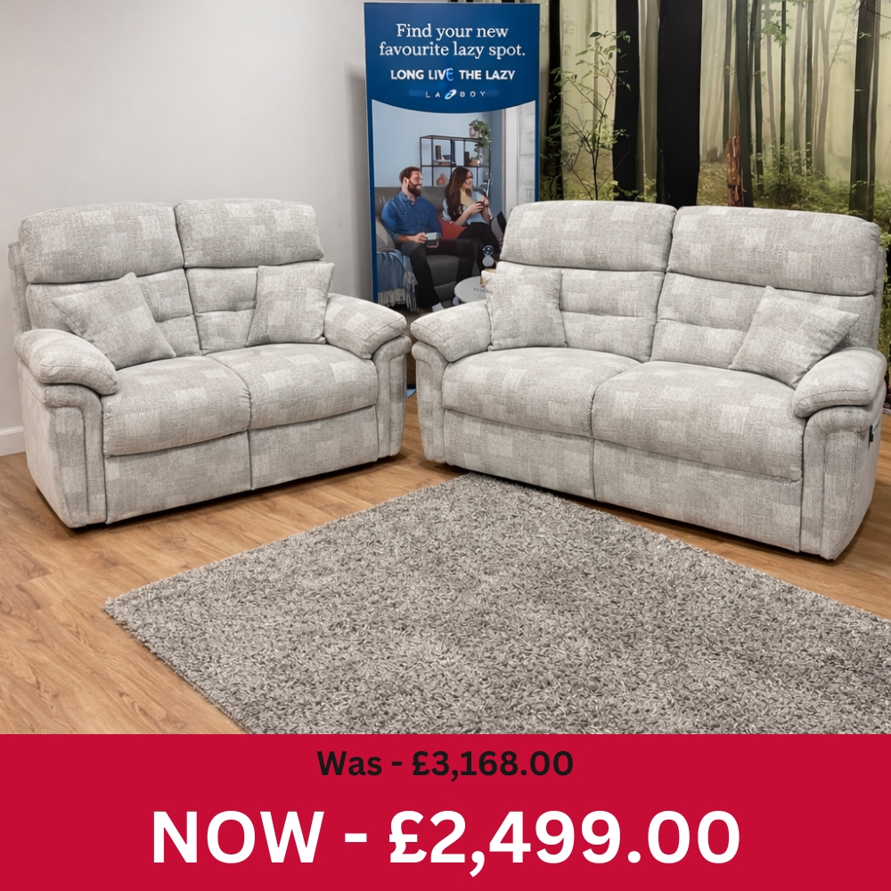 La-Z-Boy Bracken 3 Seater Manual Recliner + 2 Seater Static Sofa Set.