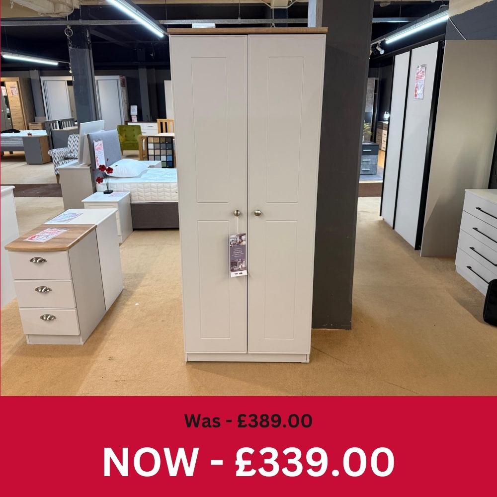 Victoria 2 Door Wardrobe in light grey with natural Nebraska oak tops.